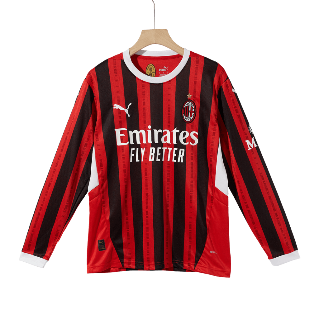 Step onto the pitch in timeless style with the AC Milan Home Long Sleeve Soccer Jersey. Featuring the club’s iconic red and black vertical stripes accentuated by subtle tonal patterns, this jersey pays homage to the Rossoneri’s rich heritage since 1899. A crisp white collar and sleeve cuffs add classic contrast, while the legendary crest proudly shines over the heart.