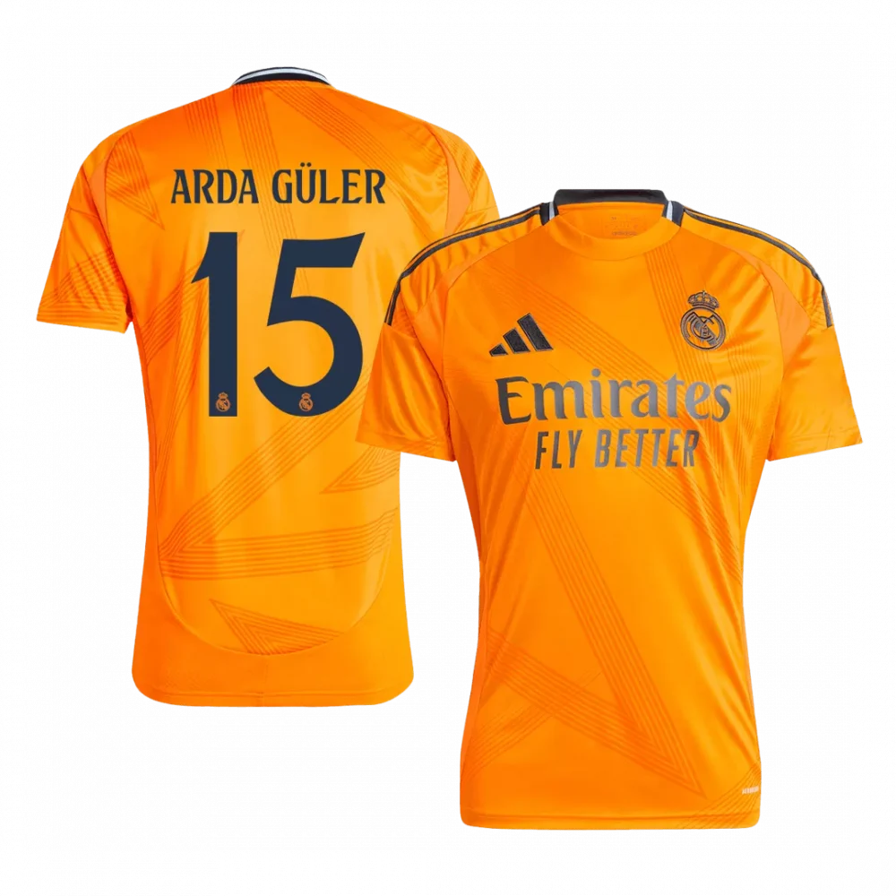 Step into the bold spirit of Real Madrid with the ARDA GÜLER #15 Away Soccer Jersey. This vibrant orange design electrifies the classic silhouette with subtle geometric patterns and contrasting dark details, capturing the energy and passion that define Los Blancos’ pursuit of excellence. Perfect for fans and players alike, it honors the club’s rich history of dynamic play while delivering top-tier comfort and performance on the field.