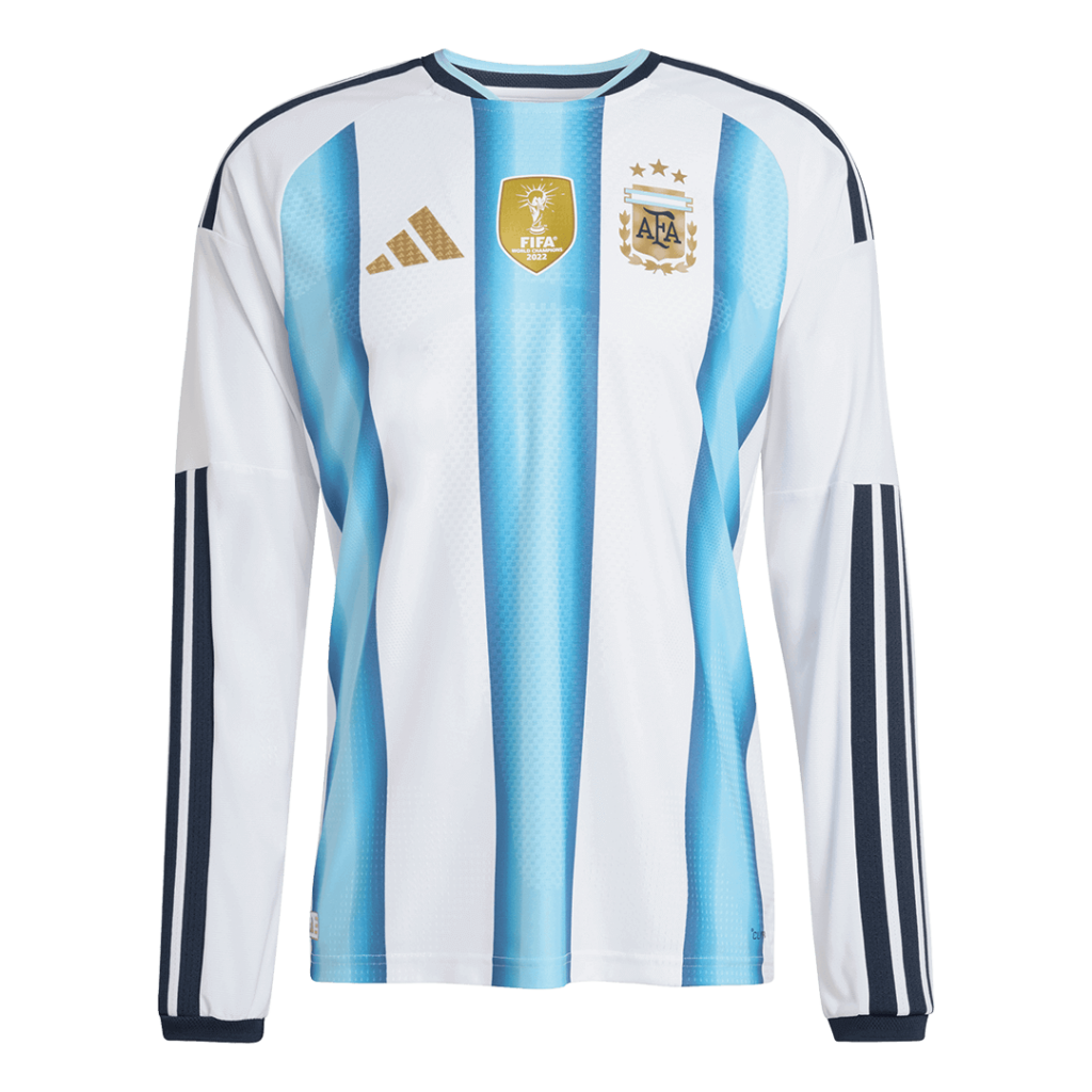 Step onto the pitch with the Argentina Home Long Sleeve Player Version Jersey for World Cup 2026, a proud celebration of the nation’s legendary football heritage. Featuring the iconic sky blue and white vertical stripes with subtle gradient shading for a modern twist, this jersey honors Argentina’s rich history of passion and excellence. The long sleeves add an extra layer of performance-ready coverage, complemented by classic detailing and bold trim.