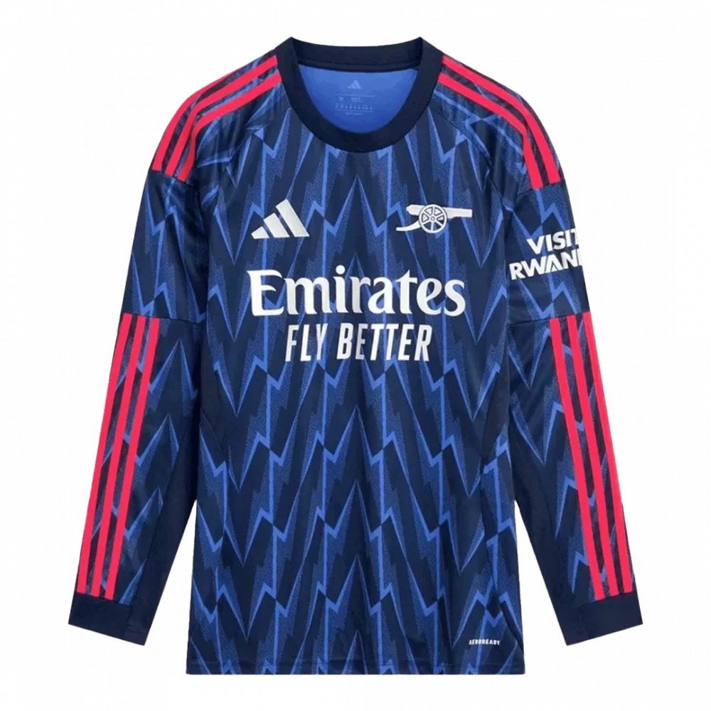 Unleash the spirit of the Gunners with the Arsenal Away Long Sleeve Jersey 2025/26. Featuring a striking deep navy base layered with bold electric blue lightning patterns, this jersey electrifies the pitch with both style and heritage. The vivid red stripes on the sleeves pay tribute to Arsenal’s classic colors, reflecting the club’s relentless energy and passion that have defined its legacy.