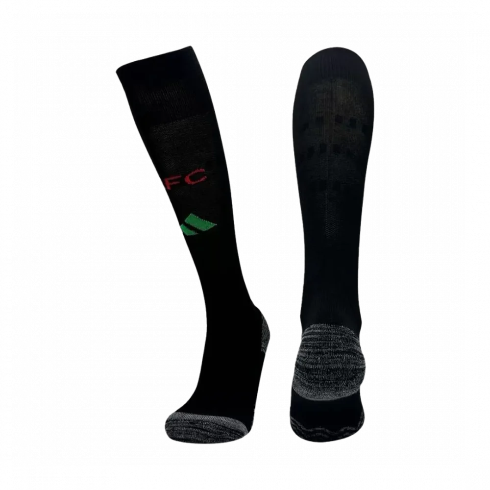 Step into the Arsenal spirit with these Away Soccer Socks, designed in bold black with subtle red and green accents that pay homage to the club’s rich heritage and dynamic style. Crafted for both comfort and performance, these socks bring the perfect balance of fit and support whether you’re on the pitch or cheering from the stands.
