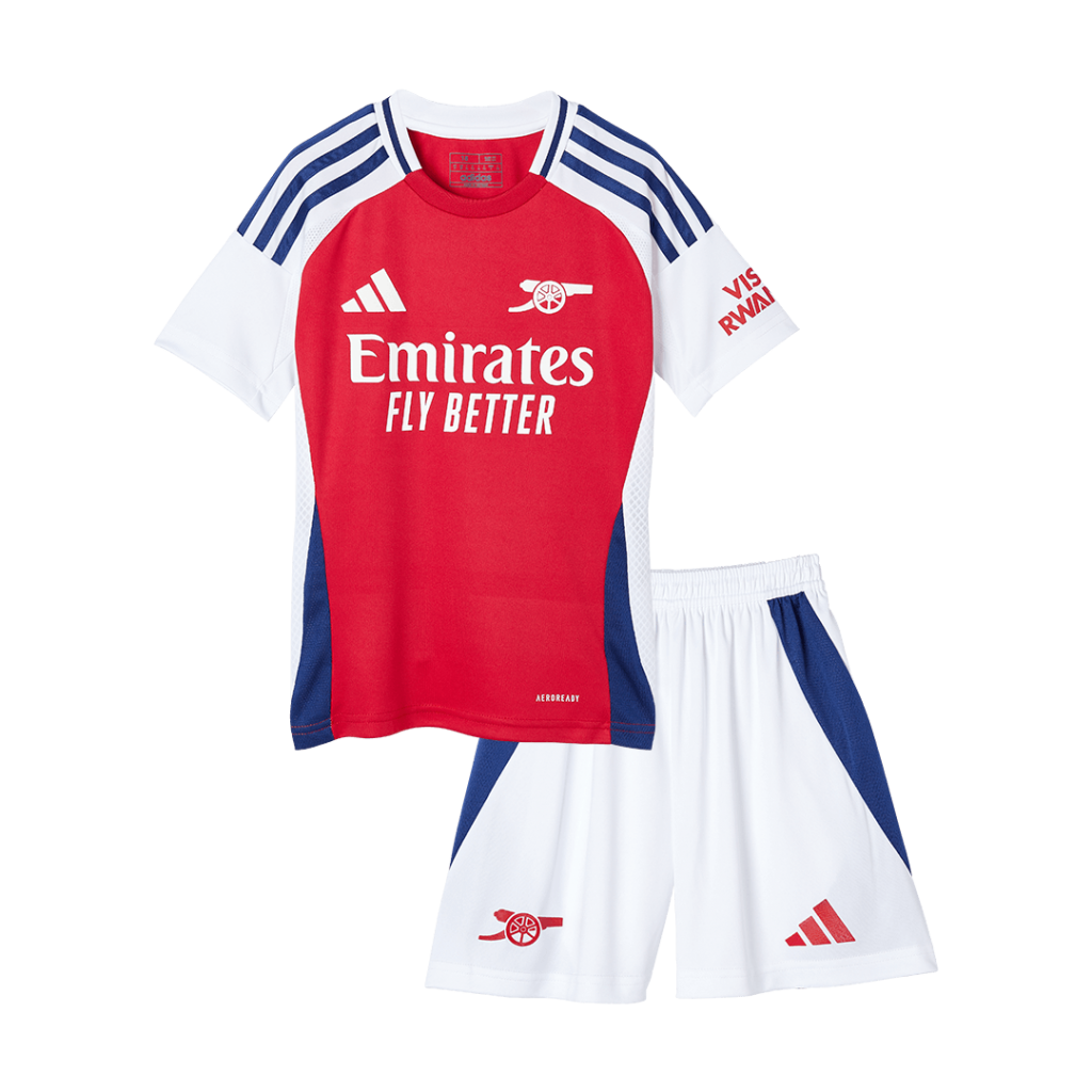 Step onto the pitch in the vibrant Arsenal Home Kids Soccer Jerseys Kit, featuring the club’s iconic red and white colors complemented by bold blue accents. This kit pays tribute to Arsenal’s rich heritage, symbolized by the traditional cannon emblem, inspiring young fans to embody the spirit of the Gunners. Crafted with breathable, moisture-wicking fabric and designed for lightweight comfort, it ensures every young player stays cool and agile during play.