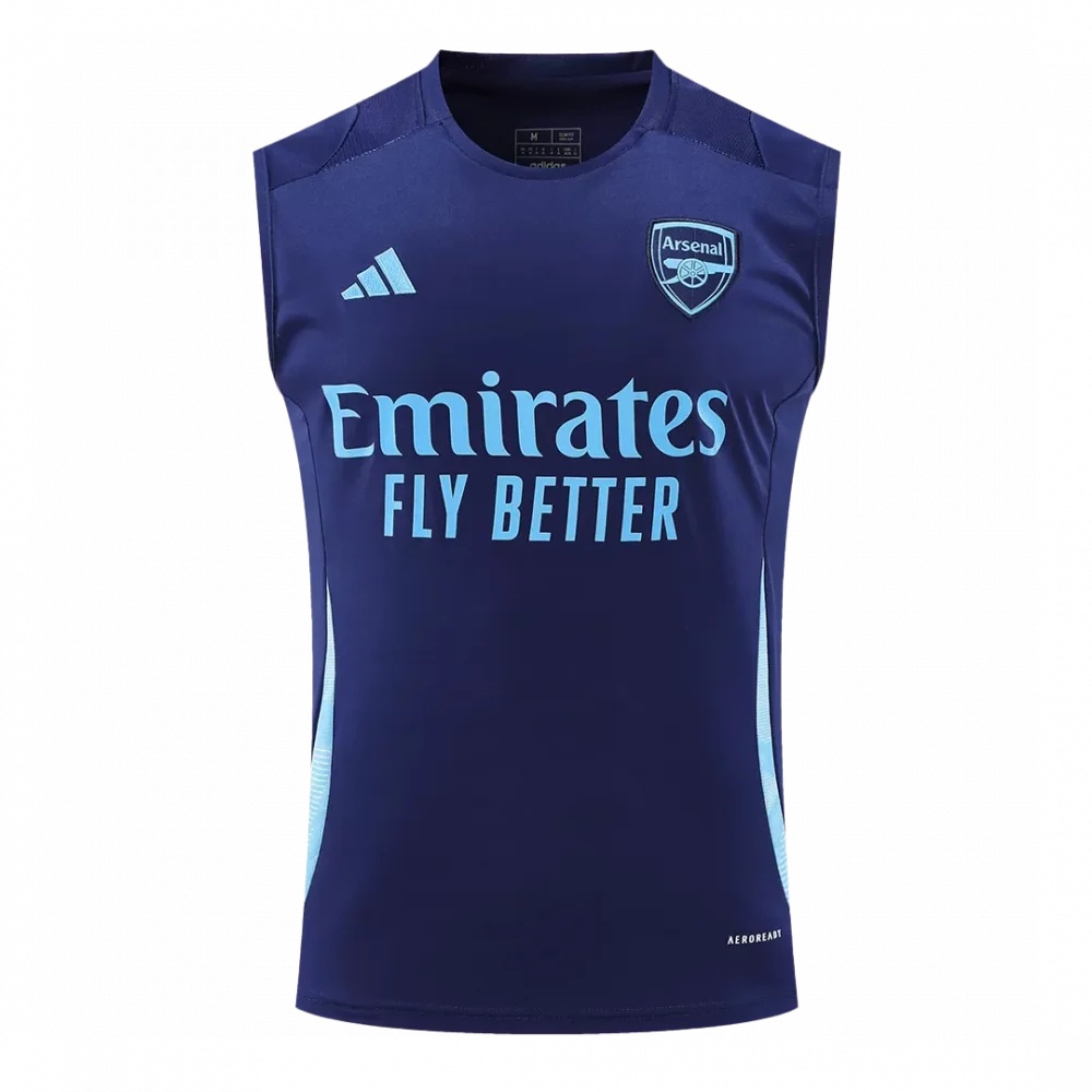 Step into the spirit of Arsenal with this navy pre-match sleeveless top, featuring sleek sky blue accents that highlight the club’s iconic cannon crest. This stripped-back design reflects Arsenal’s bold, attacking legacy while offering a modern edge for warm-up sessions. Crafted with lightweight, breathable fabric, it’s engineered to keep you comfortable and dry as you gear up for game day.