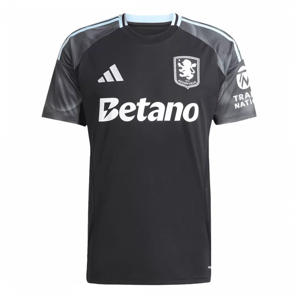 Step onto the pitch with the Aston Villa Away Soccer Jersey 2025/26, featuring a sleek black base complemented by striking gradient sleeves in shades of grey, symbolizing the club’s resilience and fighting spirit. The subtle light blue accents pay homage to Villa’s rich history, while the bold club crest stands proudly on the chest. Engineered for peak performance, this jersey delivers advanced moisture-wicking and breathable fabric to keep you cool and comfortable under pressure.