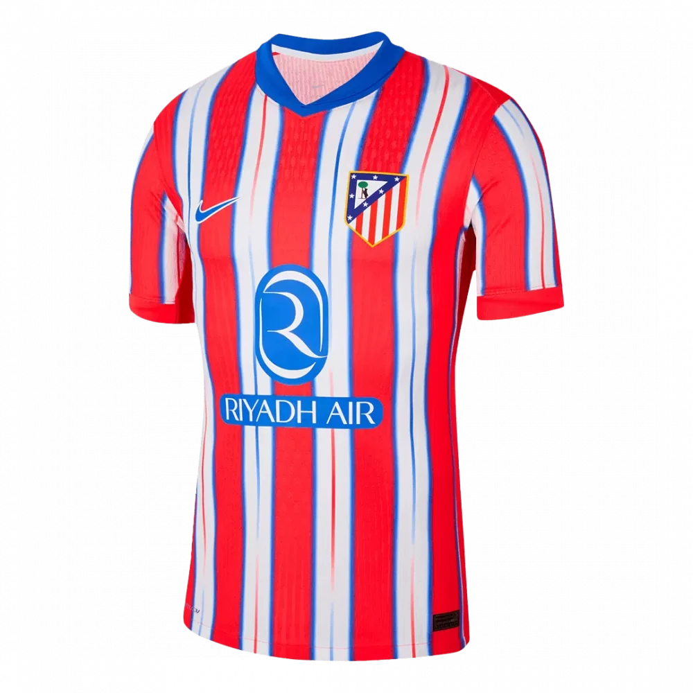 Step into the spirit of Madrid with the Atletico Madrid Home Player Version Jersey, featuring the club’s iconic red and white stripes enhanced by subtle blue accents that pay tribute to the team’s rich history of passion and resilience. The bold vertical pattern and classic blue collar combine tradition with a fresh, dynamic look designed for today’s game. Crafted from lightweight, breathable fabric with advanced moisture-wicking properties, this jersey keeps you comfortable whether you’re on the pitch or in the stands.