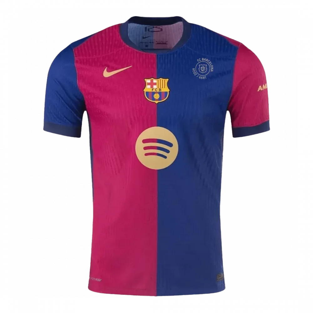 Celebrate a century and a quarter of passion with the Barcelona Home Authentic Soccer Jersey – 125th Anniversary edition. Featuring the club’s iconic half-and-half design in deep blue and rich garnet, this jersey honors FC Barcelona’s storied history and unbreakable spirit. Gold accents on the crest, sponsor, and special anniversary badge add a regal touch to this tribute. Engineered with breathable, moisture-wicking fabric and a lightweight fit, it ensures peak performance from pitch to street.