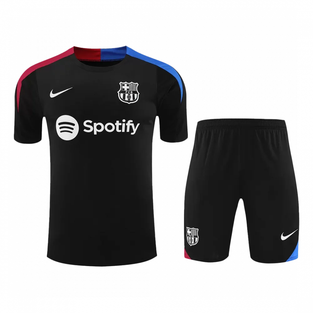 Step into the spirit of the Catalan giants with the Barcelona Pre-Match Jerseys Kit, featuring a sleek black base accented by the club’s iconic red and blue stripes on the shoulders. This design honors Barcelona’s rich history and bold identity, blending tradition with modern style for an unmistakable presence on and off the pitch. Crafted for ultimate comfort and agility, this kit uses breathable, lightweight fabric with advanced moisture-wicking properties to keep you cool and dry during every warm-up.