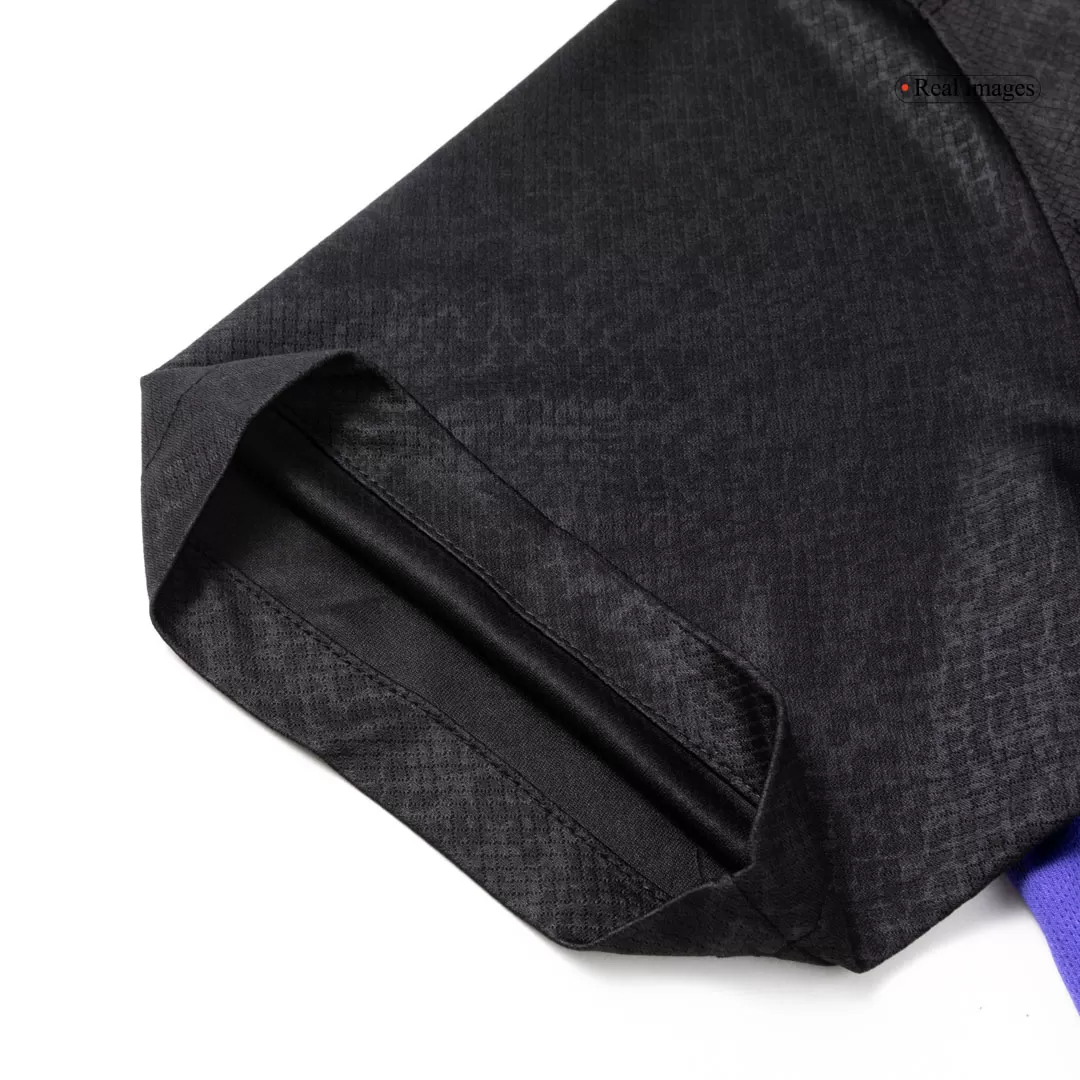 The Barcelona x Kobe Bryant Pre-Match Soccer Jersey 2025/26 Black is more than a kit—it’s a tribute to the unforgettable legacy of Kobe Bryant. Featuring a bold snakeskin print inspired by the “Black Mamba” persona, this exclusive Barcelona jersey blends basketball greatness with football culture. The sleek black and dark charcoal base is accented with vibrant purple/blue, creating a premium look that stands out on and off the pitch.