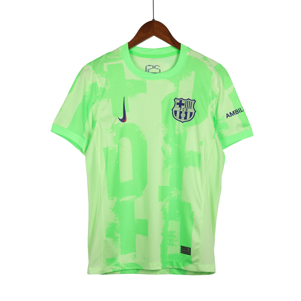 Step onto the pitch with the electrifying Barcelona Third Away Jersey Kit, featuring a bold neon green and soft lime palette that energizes every move. This striking design pays homage to the club’s fearless spirit and innovation, mixing modern abstract patterns with the iconic crest to celebrate Barcelona’s legacy of creativity and passion. Engineered for peak performance, the kit offers lightweight, breathable fabric with advanced moisture-wicking properties to keep you cool and dry under pressure.