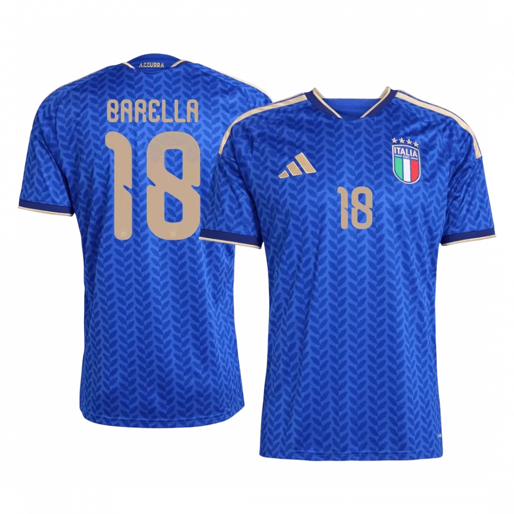 Step onto the pitch in the BARELLA #18 Italy Home Soccer Jersey for World Cup 2026, where tradition meets modern performance. This striking blue jersey features a subtle leaf pattern symbolizing growth and unity, paired with elegant gold accents that pay homage to Italy’s rich football heritage and four-time World Cup triumphs. Crafted for the passionate azzurri fan, this lightweight jersey combines breathable fabric and advanced moisture-wicking technology to keep you cool under pressure.