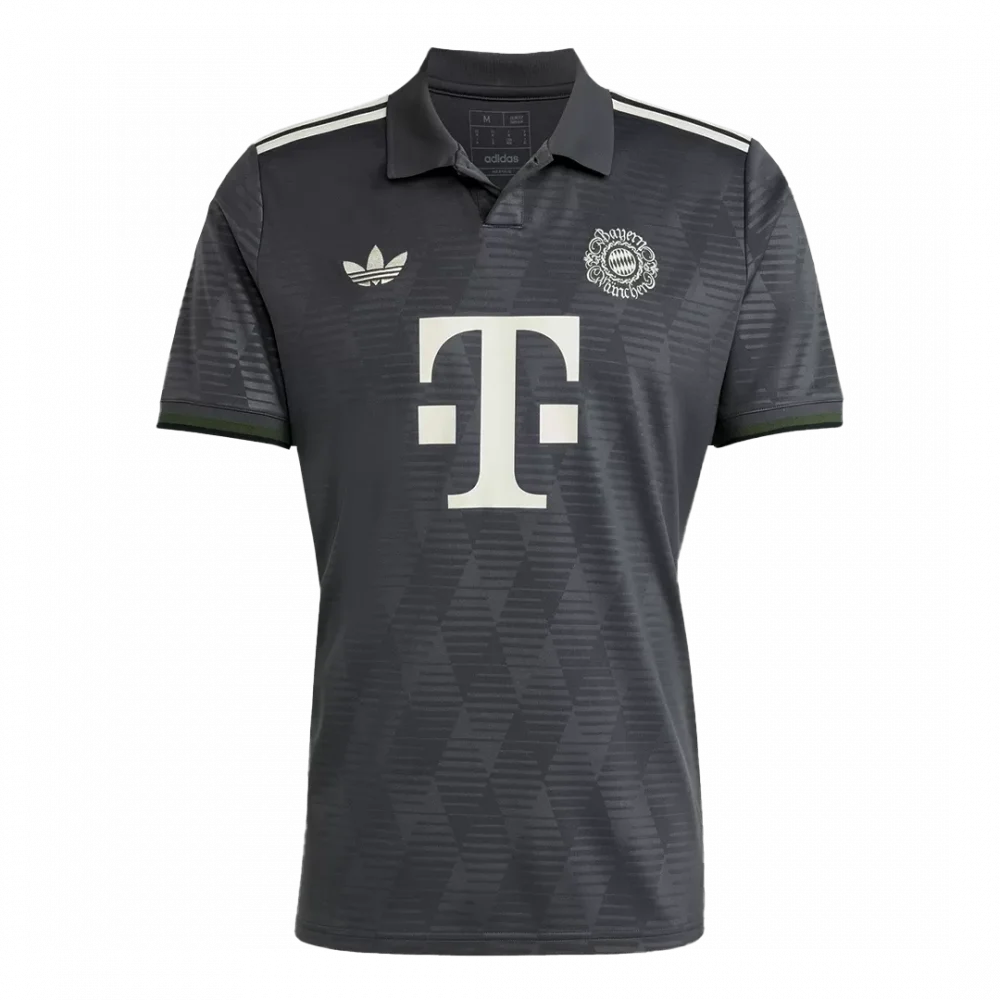 Celebrate Bayern Munich’s rich heritage with the Oktoberfest Soccer Jersey, featuring a sleek dark gray design accented by subtle diamond patterns inspired by the Bavarian flag. The classic polo collar and vintage-style logos pay homage to the club’s deep-rooted culture, blending tradition with modern style. Crafted from lightweight, breathable fabric, this jersey ensures optimal comfort and performance on and off the pitch.