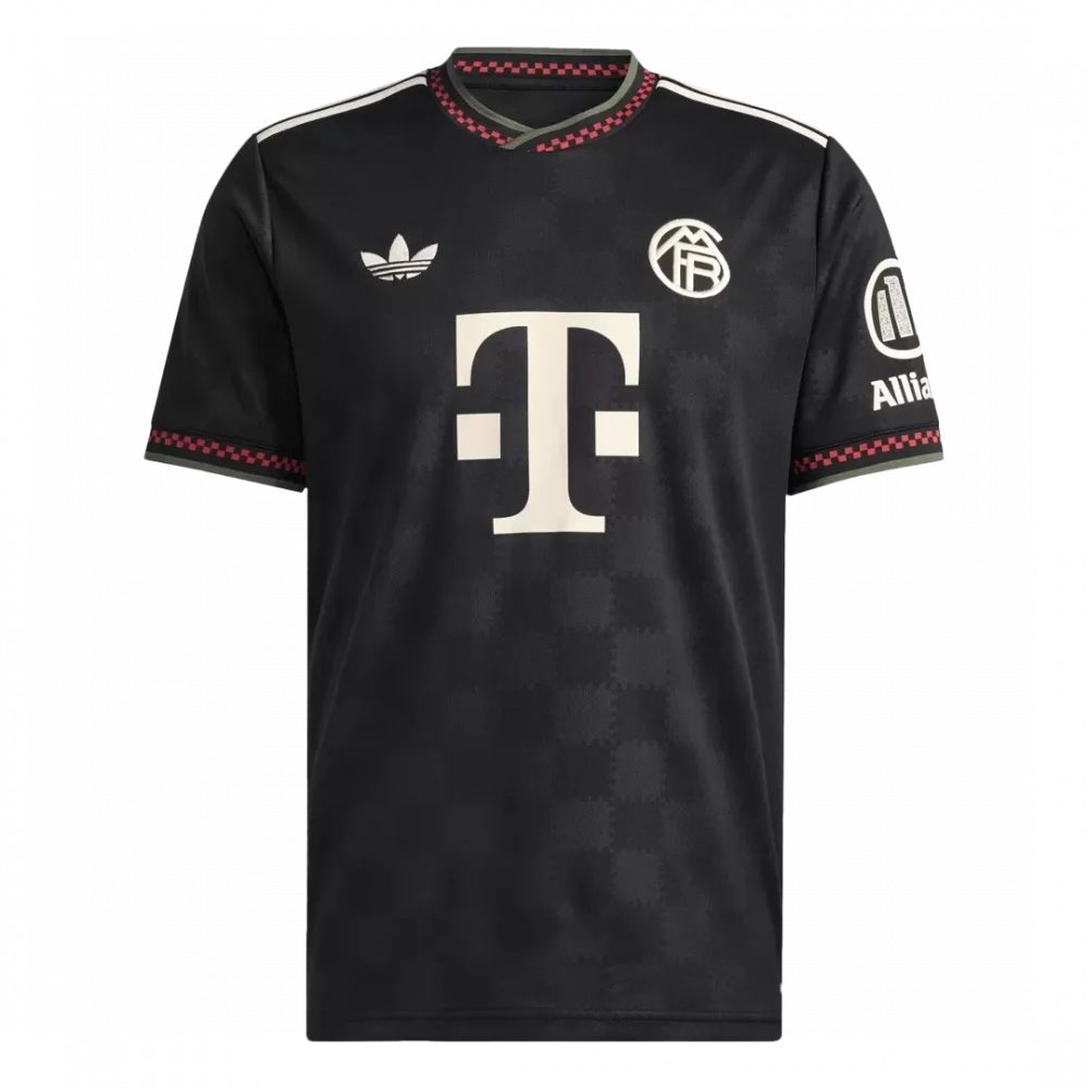 Step out boldly in the Bayern Munich Third Away Soccer Jersey 2025/26, a sleek tribute to the club’s rich heritage with a modern twist. Featuring a striking black base adorned with subtle checkered patterns and sharp red accents on the collar and cuffs, this jersey captures the fearless spirit of the Bavarian giants. The creamy white logos and sponsor details provide a powerful contrast, making this kit as iconic as Bayern’s relentless pursuit of glory.