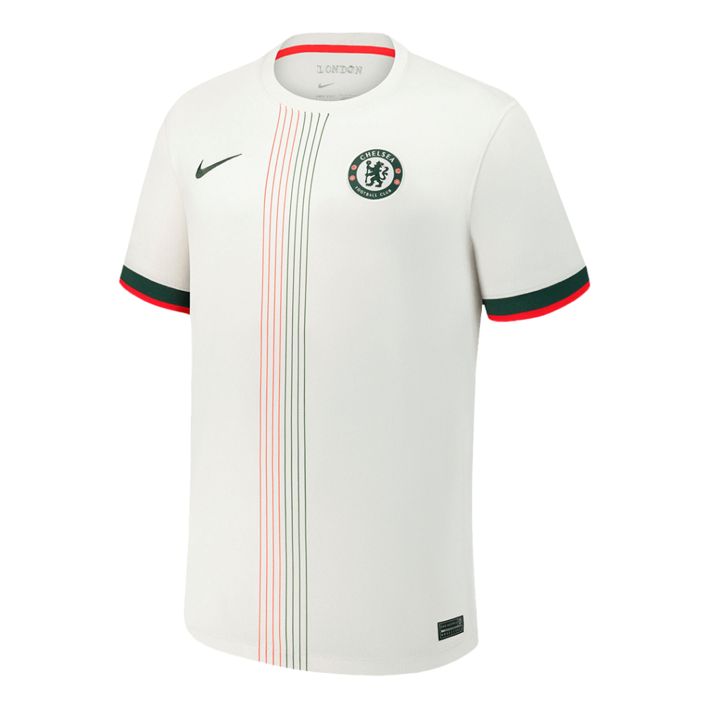 Step onto the pitch in elegant style with the Chelsea Away Jerseys Kit 2025/26. Featuring a clean white base, this kit is accented by subtle vertical stripes in dark green and deep red, reflecting the club’s rich heritage and London roots. The contrasting cuffs and collar detail add a modern twist while honoring Chelsea’s classic identity. Designed with breathable, lightweight fabric and advanced moisture-wicking technology, this kit ensures comfort and performance whether cheering from the stands or playing on the field.