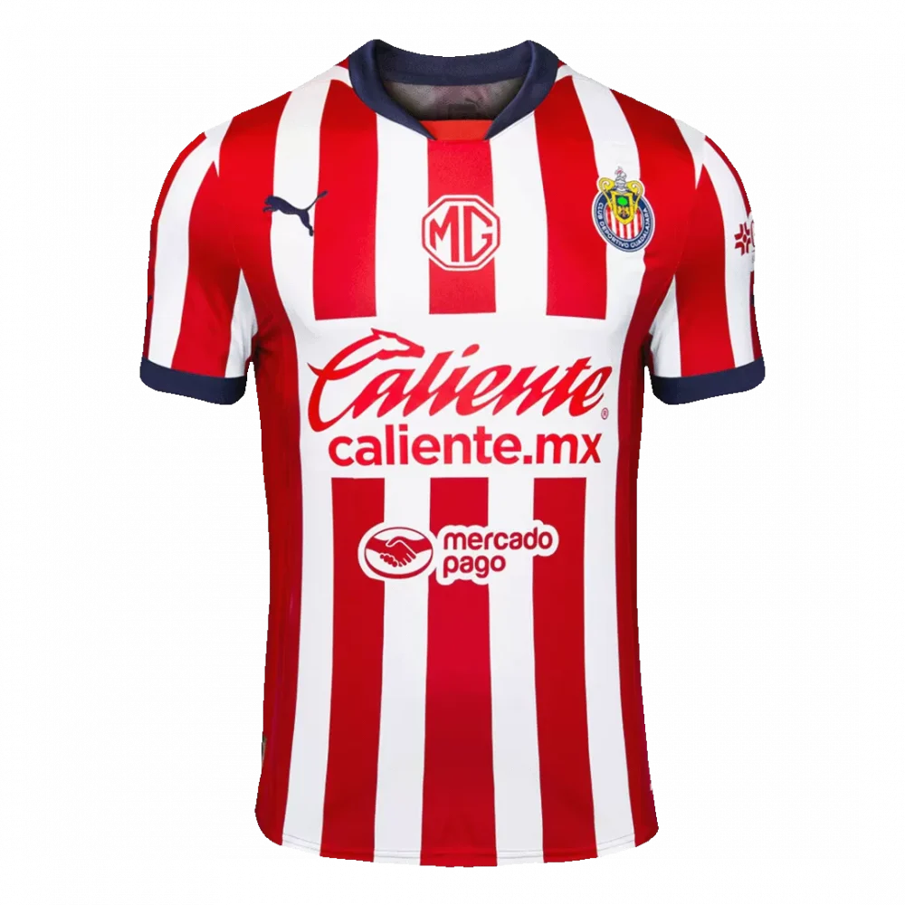 Step into the passion of Guadalajara with the Chivas Home Authentic Soccer Jersey. Featuring classic red and white vertical stripes paired with contrasting navy accents on the collar and cuffs, this design pays homage to one of Mexico’s most storied clubs. Rooted in a proud tradition of excellence and local pride, this jersey is for fans who live and breathe the spirit of Chivas.