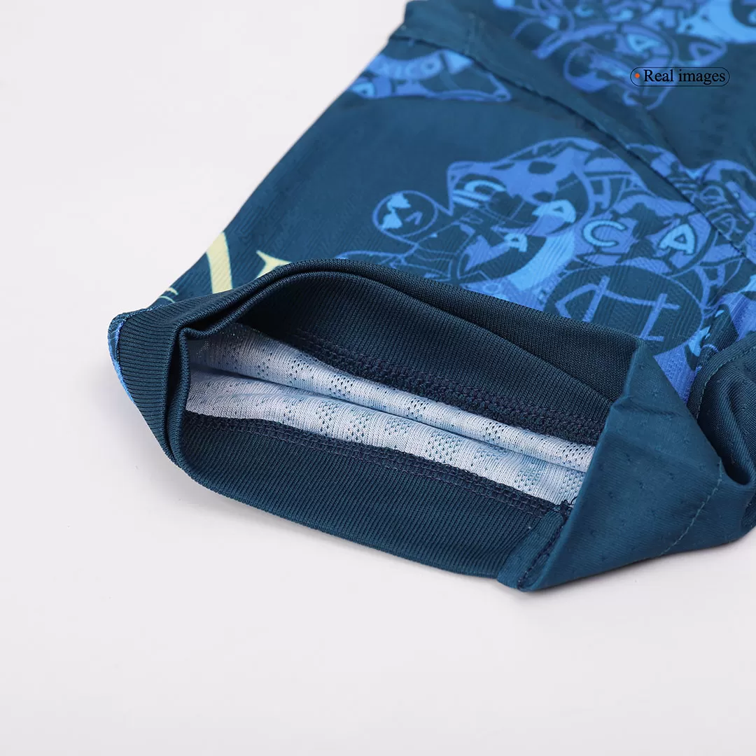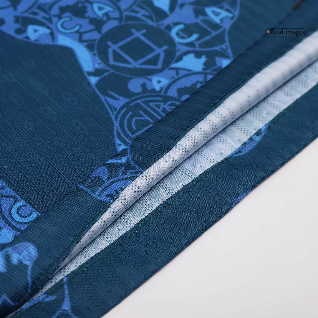 The new Club América jersey for the 2024-25 season showcases a striking ‘Valerian Blue’ hue with an intricate map of the Americas pattern adorning the entire shirt. Infused with the vibrant Valerian Blue and Lemon Chiffon colors, thisClub América jersey embodies the essence and dynamism of one of Mexico’s most revered football clubs. Situated prominently at the center of the chest, the club’s logo and crest add a touch of tradition and pride to this unique and visually captivating Club América jersey.