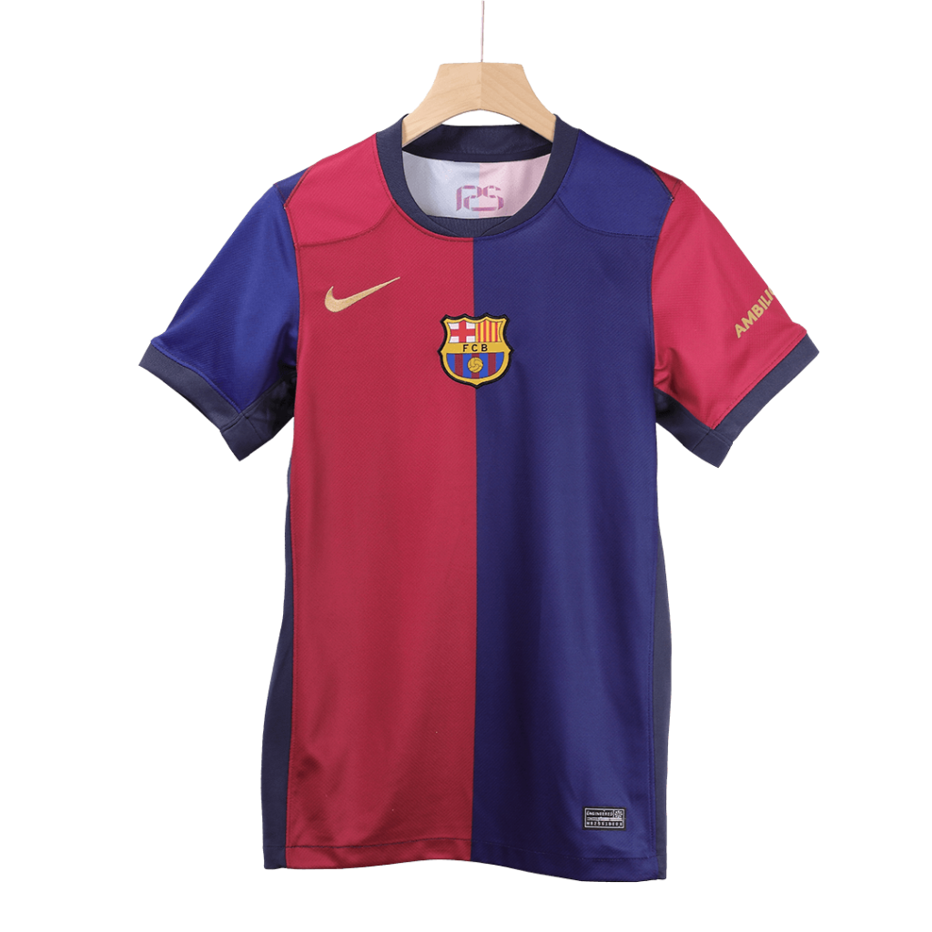 Step into the spirit of one of football’s most legendary clubs with the COLDPLAY #10 Barcelona Home Soccer Jersey. Featuring the iconic blue and maroon vertical halves, this jersey celebrates Barcelona’s proud tradition of passion, skill, and unity. The sleek gold detailing, including the custom number and sponsor logos, adds a touch of modern elegance, symbolizing the club’s continuous pursuit of excellence both on and off the pitch.