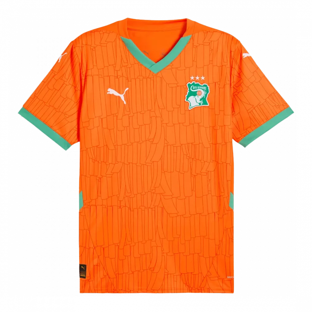 Step onto the pitch with the Côte d’Ivoire Home Soccer Jersey, showcasing a vibrant orange base inspired by the nation’s bold spirit and rich football history. Subtle geometric patterns add depth and texture, while the contrasting green accents on the collar and sleeve cuffs pay homage to the country’s flag and pride. This jersey embodies the heart of Ivorian football tradition, encouraging every player to perform with passion and unity.