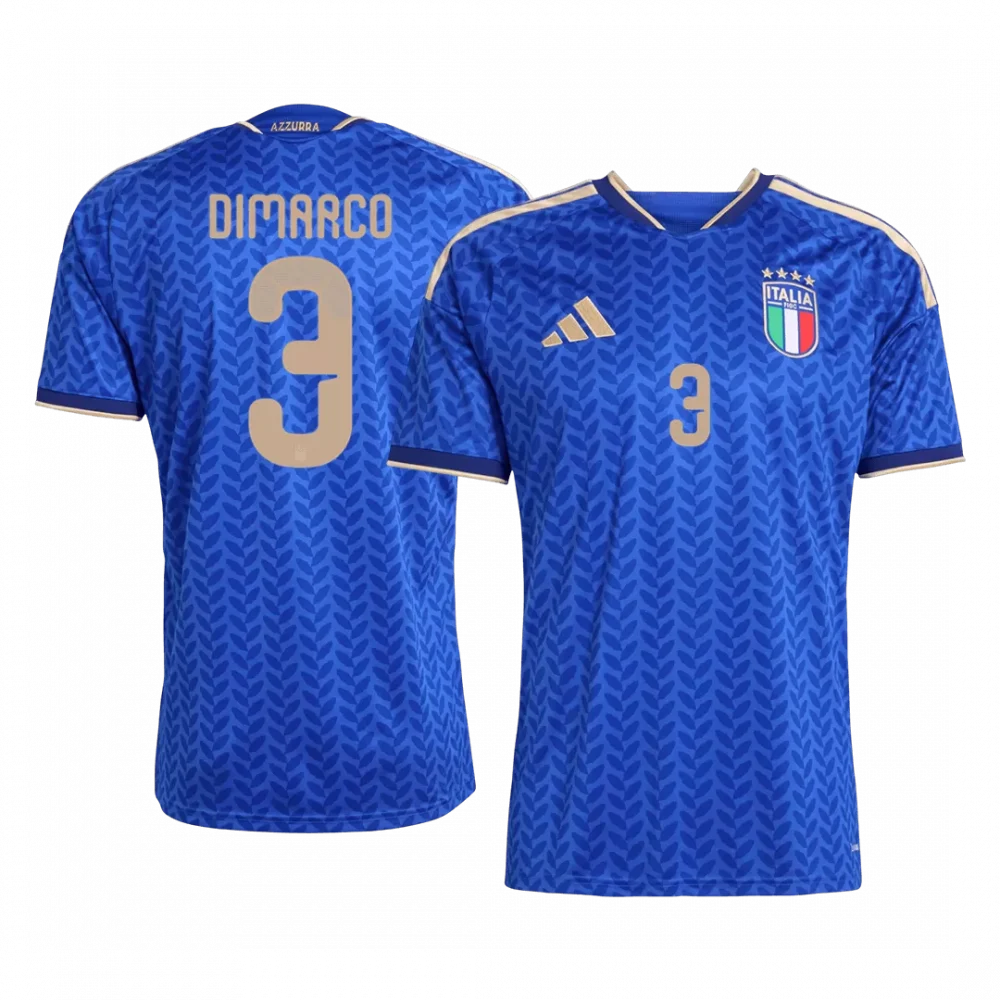 Step into the spirit of Italian football with the DIMARCO #3 Italy Home Soccer Jersey for World Cup 2026. Featuring the iconic Azzurri blue adorned with a subtle leaf pattern, this jersey pays homage to Italy’s rich soccer heritage and their relentless pursuit of excellence on the world stage. Golden accents highlight the crest and player details, embodying the pride and elegance that define the Squadra Azzurra.
