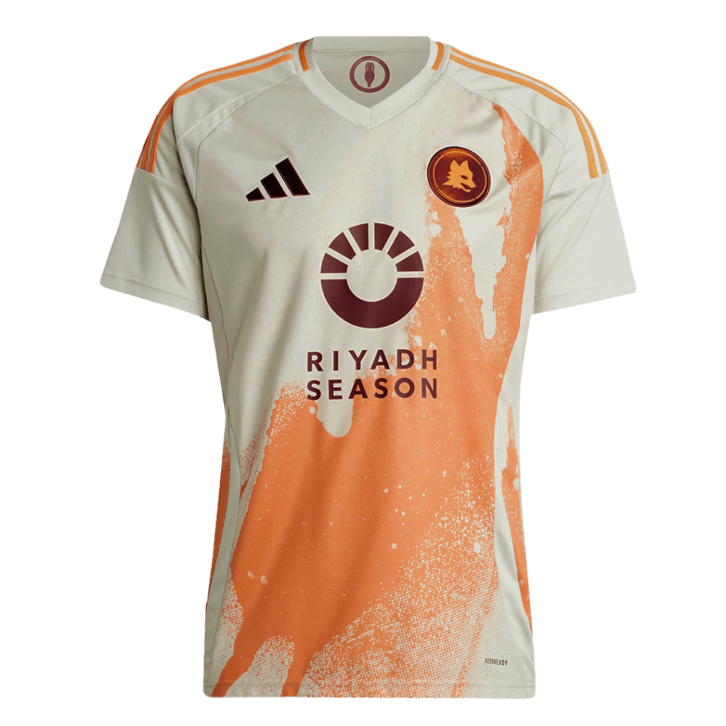 Embrace the spirit of AS Roma with the DYBALA #21 Roma Away Soccer Jersey, featuring a striking light beige base accented by dynamic burnt orange splashes that echo the fiery passion of the Eternal City. The subtle maroon details and the iconic wolf crest pay homage to Roma’s proud heritage and relentless fighting spirit. Crafted for peak performance, this jersey combines breathable, lightweight fabric with advanced moisture-wicking properties to keep you cool and dry on the pitch or in the stands.