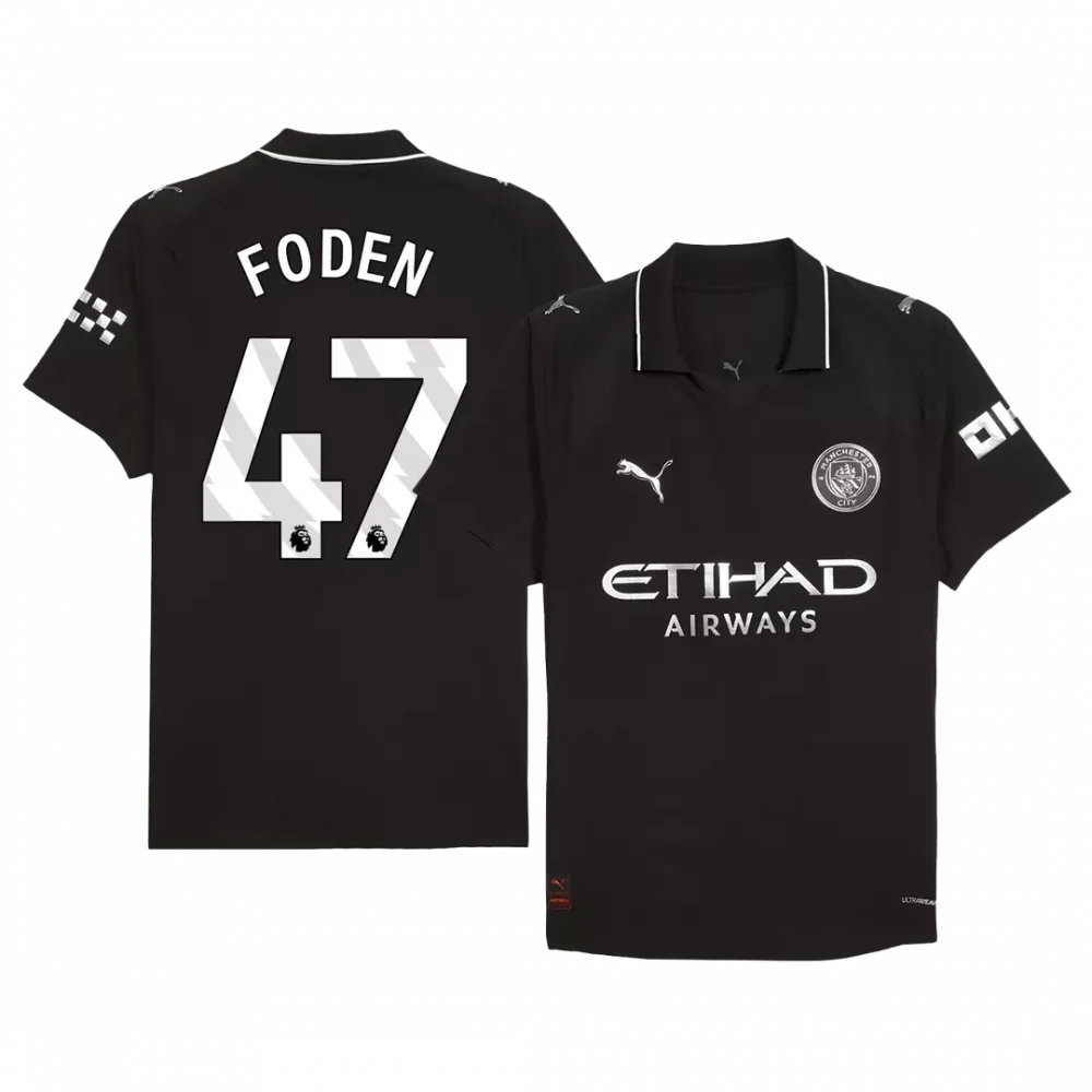 Step into the spotlight with the FODEN #47 Manchester City Away Authentic Soccer Jersey 2025/26. This sleek all-black design pays homage to the city’s bold spirit with subtle detailing in white, including a refined collar trim and modern geometric patterns within the player number. A perfect blend of tradition and contemporary style, it echoes Manchester City’s relentless drive for victory.
