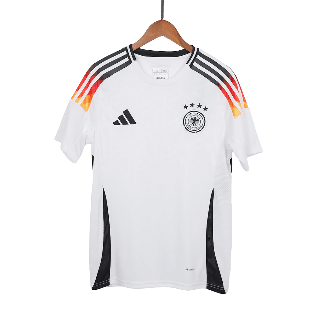 Step onto the pitch with the Germany Home Soccer Jersey EURO, a bold tribute to the nation’s storied football legacy. Featuring a crisp white base with dynamic black accents and a striking gradient of the German flag colors across the shoulders, this jersey embodies the spirit of unity, strength, and precision that defines the team’s history. Crafted for peak performance, it offers advanced moisture-wicking and breathable fabric to keep you cool and comfortable from the first whistle to the final goal.