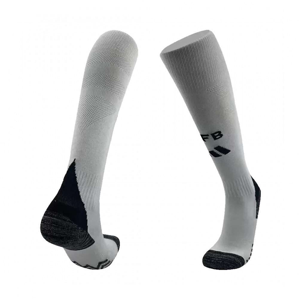 Step into the spirit of German football with these Germany Home Soccer Socks for kids. Featuring a sleek white base with bold black accents, they capture the classic tones of the national team known for precision and resilience on the pitch. These socks are designed to keep young fans comfortable and focused, mirroring the strength and discipline that define Germany’s rich soccer legacy.