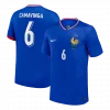 Step onto the pitch with the iconic France Home Soccer Jersey featuring #9 Giroud, a symbol of French football excellence. This striking blue jersey pays homage to Les Bleus’ rich history, highlighted by the classic rooster emblem and two championship stars that celebrate France’s proud legacy. The sharp red and white accents on the collar and cuffs nod to the nation’s tricolor flag, blending tradition with modern style.