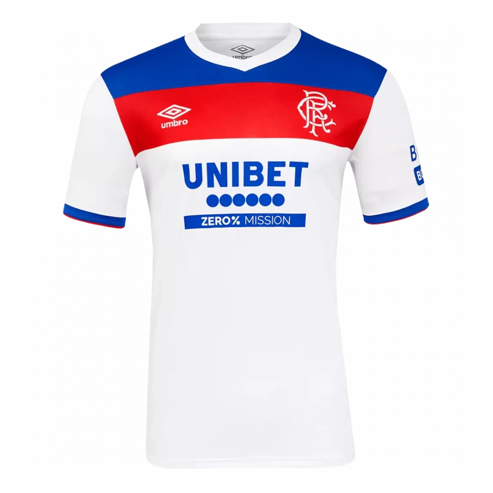 Step onto the pitch with the Glasgow Rangers Away Soccer Jersey 2025/26, featuring a crisp white base accented by bold red and blue bands that echo the club’s iconic colors and proud heritage. The clean, classic design honors Rangers’ enduring spirit and commitment to excellence, making it perfect for fans who stand by the team both home and away. Engineered for peak performance, this jersey combines breathable, lightweight fabric with advanced moisture-wicking properties to keep you comfortable throughout the game.