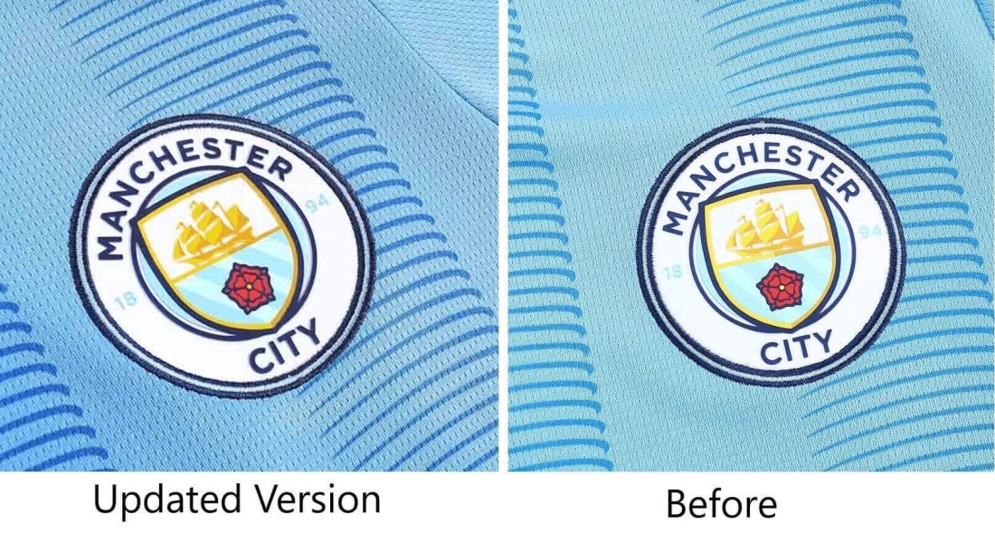Introducing the new and improved Manchester City home jersey, featuring upgraded breathable materials for enhanced comfort and performance on the pitch, close to the original version.