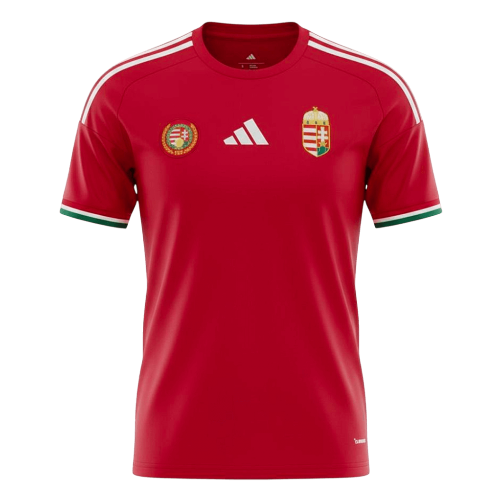 Step onto the pitch with pride in the Hungary Home Soccer Jersey for World Cup 2026. This bold red jersey features clean white stripes along the shoulders and subtle green and white trim on the sleeves, paying homage to the Hungarian national colors and heritage. Emblazoned with traditional crest details, it celebrates Hungary’s rich football legacy while delivering next-level comfort and performance.