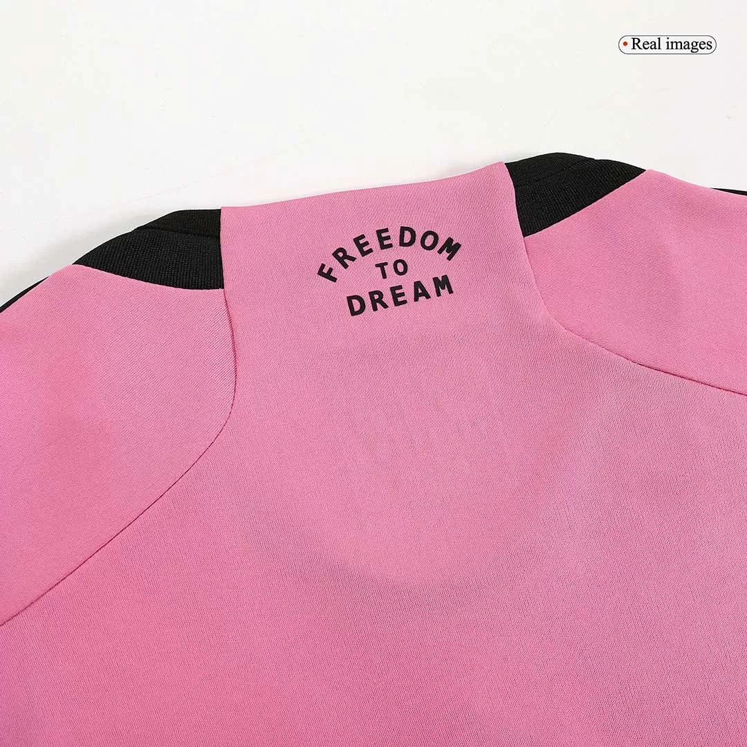 • Color and Design: The jersey’s eye-catching pink and black color scheme is a nod to the club’s vibrant identity, complemented by a subtle ‘M’ pattern woven throughout. Central to the jersey’s design is the club’s bilingual motto, ‘Freedom to Dream’ & ‘Libertad Para Soñar’, which is more than just a slogan—it’s a call to action for fans and players alike to aspire without limits.