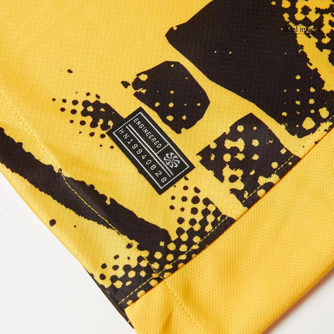 Inter Milan Third Away Jersey 2024/25 OUT NOW! The Inter Milan jersey 2024/25 is inspired from the team’s 96-97 third Inter Milan jersey by Umbro. Both are designed into yellow color. Inter Milan jersey has a yellow base with black details. What’s more, you will be amazed with the collar, it features a double stripe design on the sides, combining with yellow and black.The patterns on this Inter Milan jersey draw inspiration from Milan’s architectural landscape, paying homage to the city’s trailblazing artists and designers. The memorable part of this Inter Milan camiseta futbol is ‘2008’ embedded in the collar. Inter’s women’s team is founded in 2018. The double Swoosh design of this Inter Milan jersey aims to celebrate the rise of women’s football.