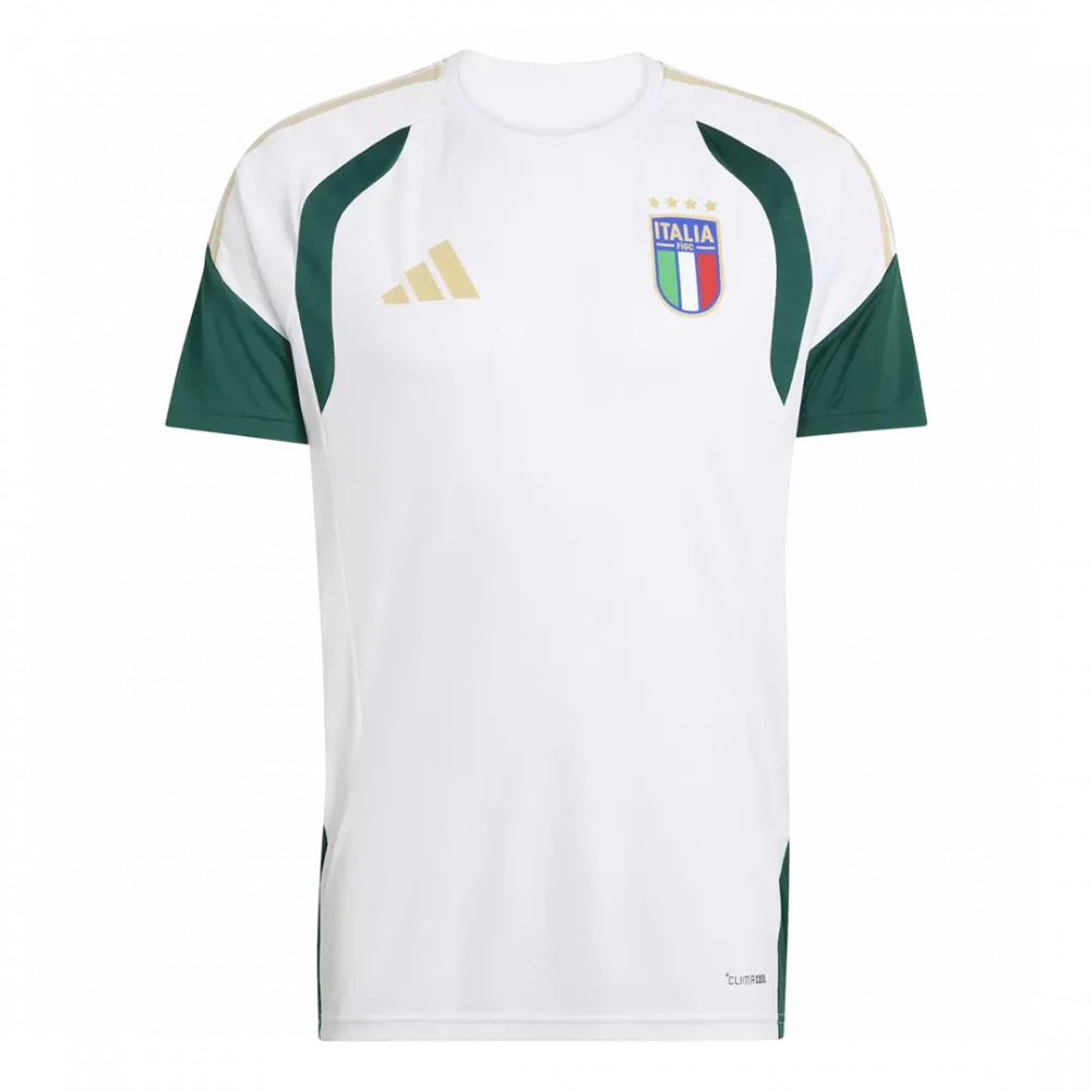 Step into the spirit of Azzurri pride with the Italy Pre-Match Soccer Jersey in crisp white, set to make an impact at the World Cup 2026. Featuring elegant dark green accents along the sleeves and sides, paired with subtle gold details, this jersey honors Italy’s rich football legacy and their relentless pursuit of excellence. Lightweight and breathable, it offers superior comfort as you gear up to support or take on the pitch.