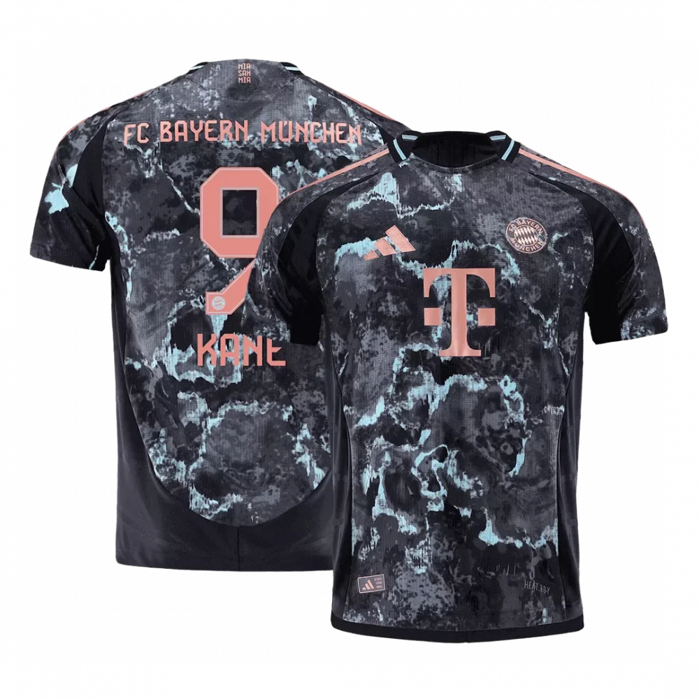 Step into the game with the Kane #9 Bayern Munich Away Authentic Soccer Jersey, where bold style meets fierce tradition. Featuring a striking black and smoky blue marbled pattern, this jersey captures the dynamic spirit of Bayern Munich’s relentless pursuit of victory. Accented with soft coral pink lettering and details, it brings a modern edge while honoring the club’s prestigious legacy — a perfect tribute to one of football’s most iconic teams.