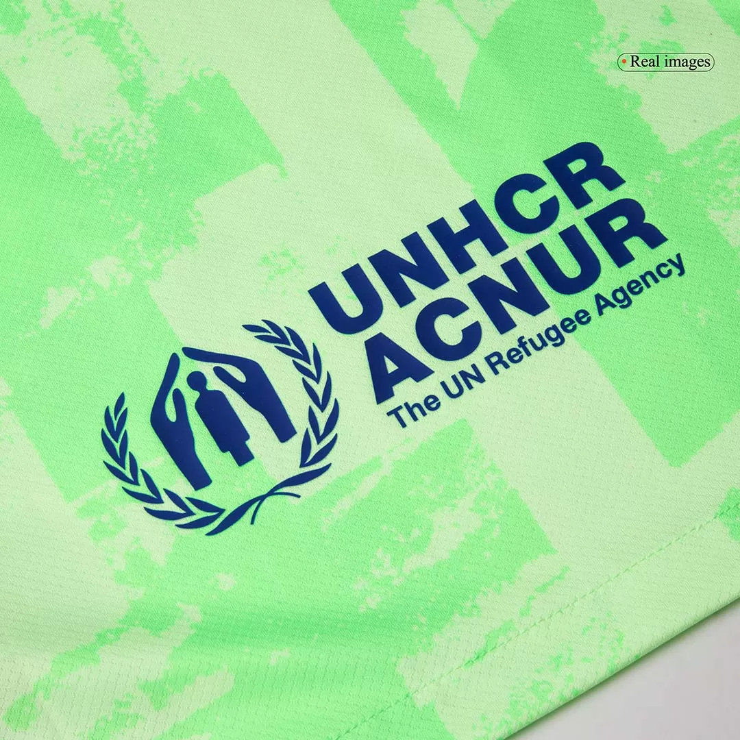 Step into the excitement of every away match with the LEWANDOWSKI #9 Barcelona Third Away Soccer Jersey. Featuring a striking vibrant green palette with abstract, washed block patterns, this jersey pays tribute to the club’s innovative spirit and enduring legacy of attacking football. The bold navy details highlight the iconic crest and player name, blending tradition with a fresh, modern edge.