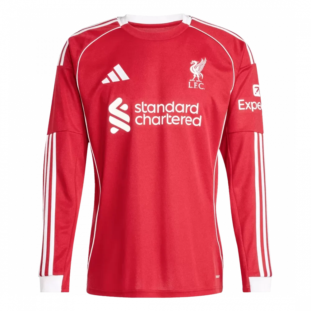 Step onto the pitch with the Liverpool Home Long Sleeve Jersey 2025/26, where tradition meets modern performance. Featuring the club’s iconic red with subtle white accents along the shoulders and sleeves, this jersey honors Liverpool’s storied history and enduring passion. The clean, classic design embodies the spirit of the Reds, inspiring fans and players alike to give their all.