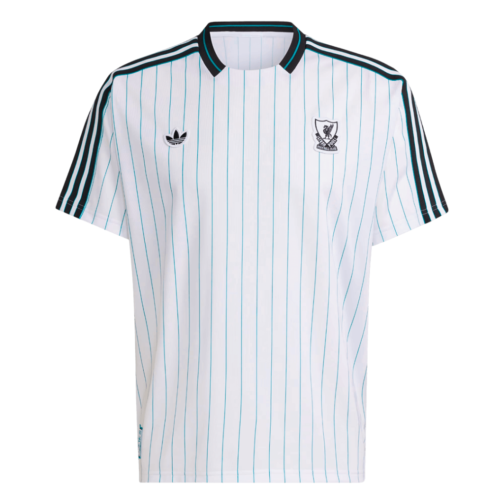 Step into a timeless classic with the Liverpool Icon Soccer Jersey 2025/26. Featuring crisp white fabric adorned with subtle teal pinstripes and bold black accents along the collar and shoulders, this design pays homage to the club’s storied heritage and its enduring style both on and off the pitch. A perfect blend of retro charm and modern performance, it captures the spirit of Liverpool’s legendary past while gearing you up for today’s game.