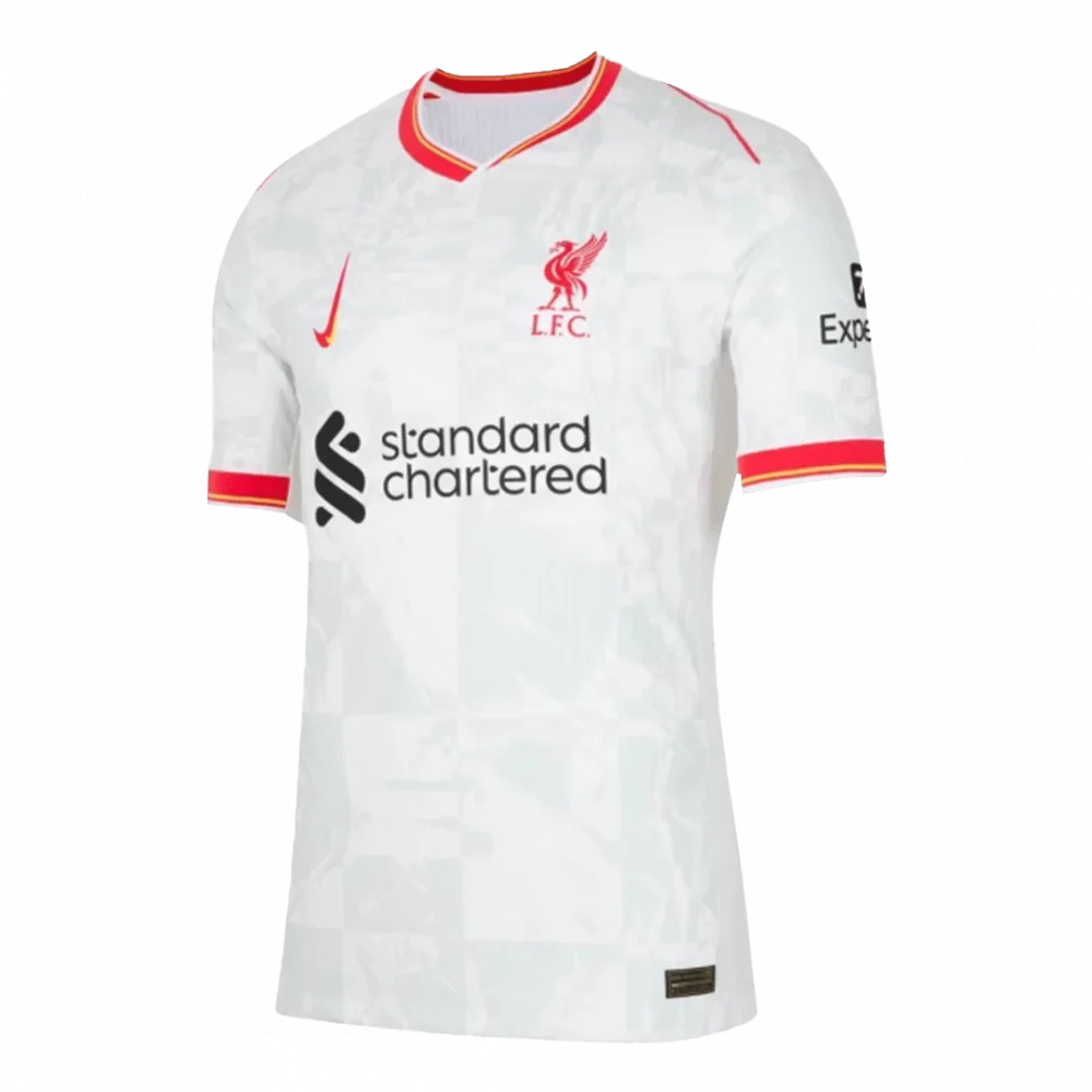 Step onto the pitch with the Liverpool Third Away Authentic Soccer Jersey, featuring a sleek white base adorned with subtle geometric patterns that symbolize the club’s historic cityscape. Bold red and yellow accents on the collar and sleeves pay homage to Liverpool’s vibrant spirit and legendary Fighting Spirit, making this jersey a proud tribute to the Reds’ enduring legacy. Crafted for players and fans alike, it delivers unmatched comfort and performance through breathable, moisture-wicking fabric and a lightweight design.