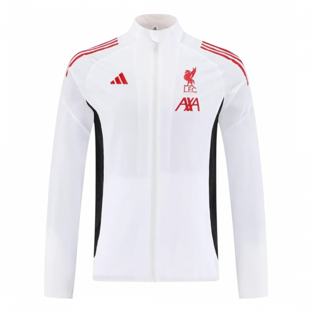 Step out in style with the Liverpool Windbreaker Jacket 2025/26 in striking white, featuring bold red accents that pay homage to the club’s rich heritage. The clean design highlights the iconic Liverbird and club sponsors with sharp red details along the shoulders, blending classic pride with modern flair. Crafted for both fans and athletes, this jacket offers advanced moisture-wicking and breathable fabric to keep you comfortable through every challenge.