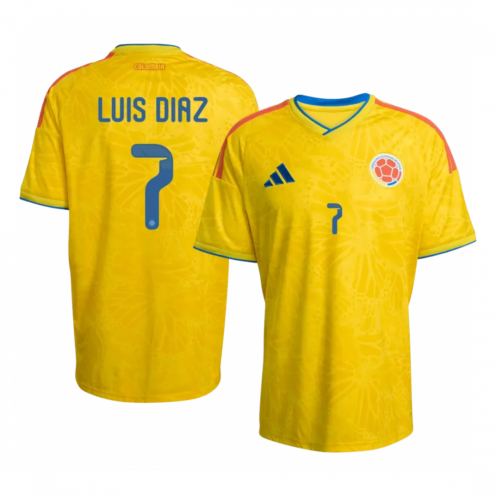 Step into the spirit of Colombia with the LUIS Díaz #7 Home Soccer Jersey for World Cup 2026. Featuring the vibrant yellow base inspired by Colombia’s national pride, accented with red and blue details reflecting the country’s flag, this jersey celebrates the legacy and passion of Colombian football. Subtle butterfly wing patterns pay homage to the nation’s rich biodiversity and fighting spirit on the field.