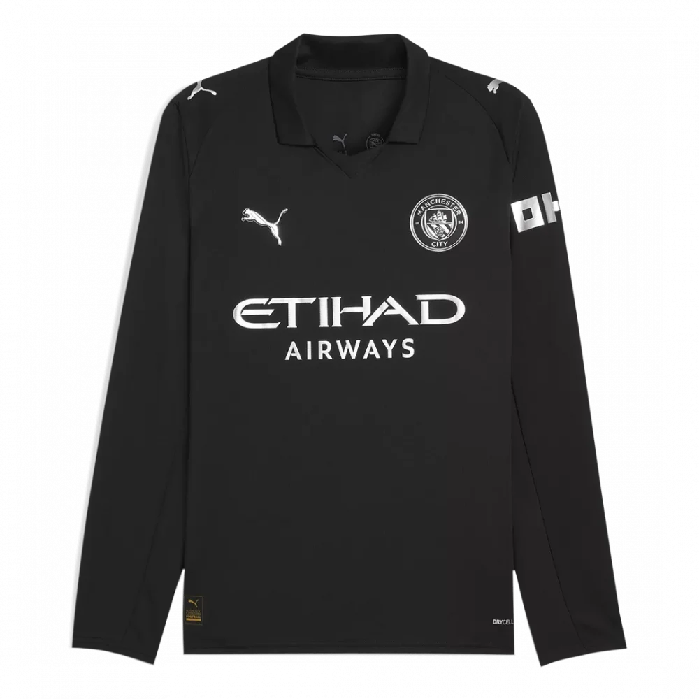 Step into the future of Manchester City’s legacy with the 2025/26 Away Long Sleeve Jersey. Featuring a sleek, all-black design with contrasting white details, this jersey reflects the club’s relentless ambition and modern edge. The classic collar adds a touch of tradition while maintaining a sharp, contemporary look that honors the team’s rich history of excellence.