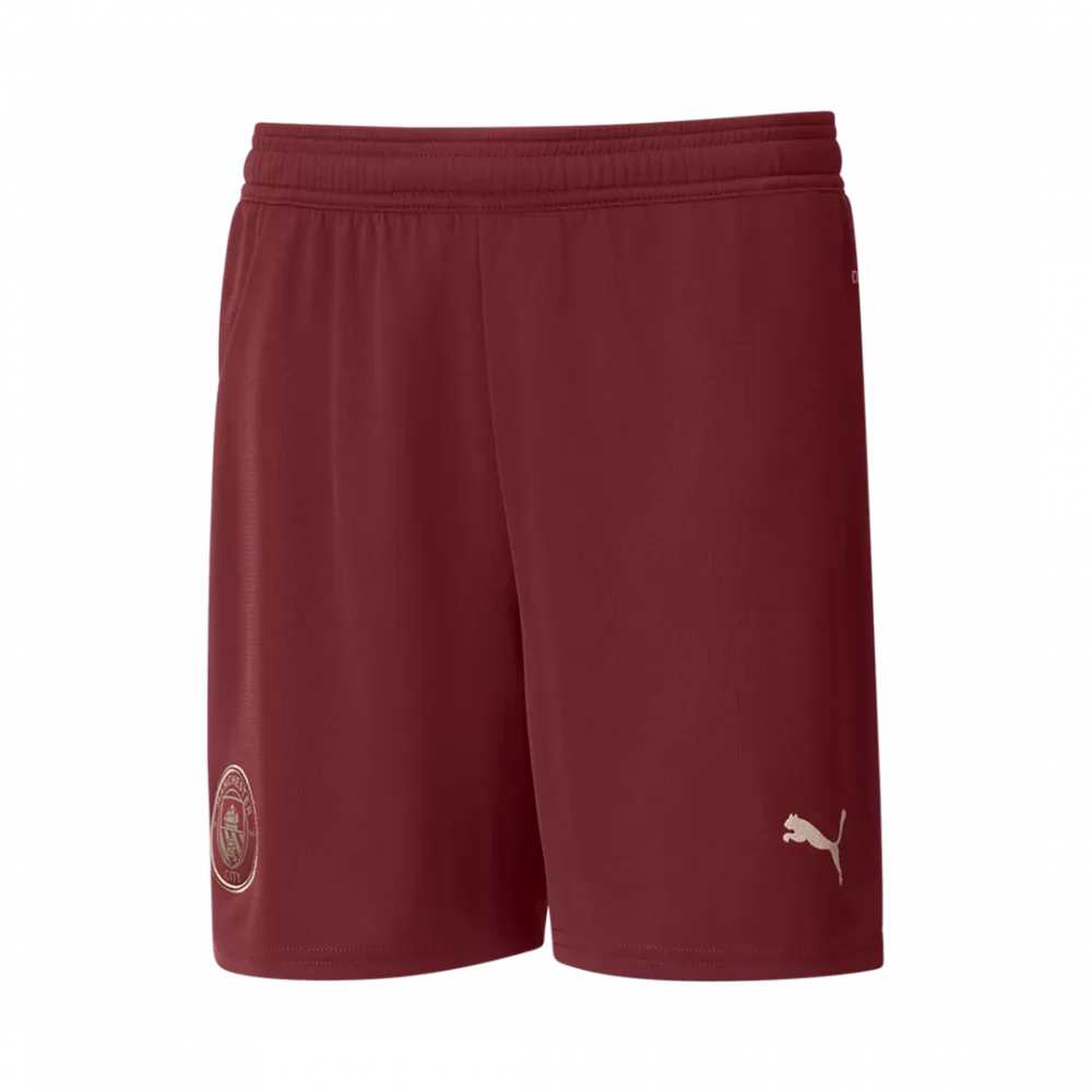Step onto the pitch with confidence in the Manchester City Third Away Soccer Shorts, featuring a rich maroon hue that symbolizes the club’s bold spirit and historic resilience. These shorts combine sleek simplicity with performance-driven design, celebrating the club’s ambition while ensuring you stay comfortable and focused during every play.