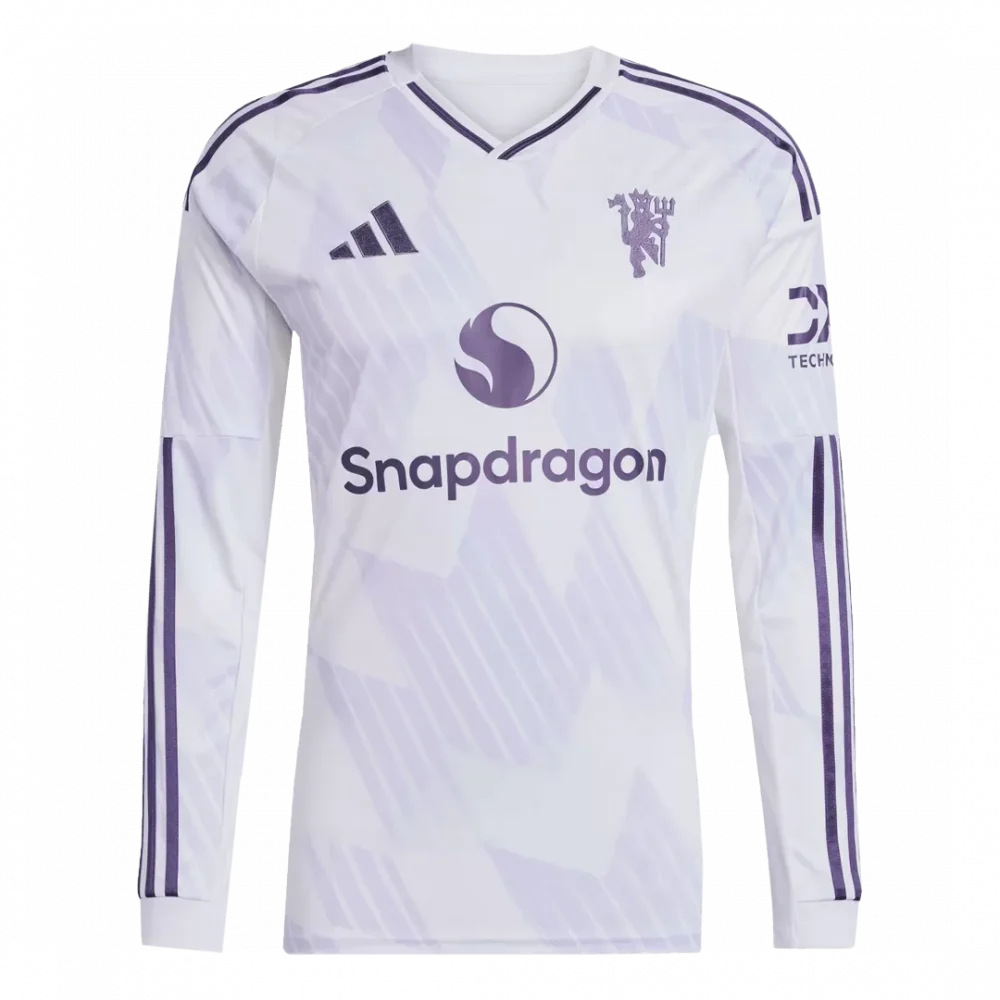Step out in style with the Manchester United Away Long Sleeve Jersey 2025/26, featuring a sleek white base accented by subtle purple geometric patterns that give a modern twist to the club’s rich heritage. The purple detailing on the stripes, crest, and sponsor brings a fresh, sophisticated look while honoring United’s enduring tradition of excellence. Engineered with breathable, moisture-wicking fabric, this lightweight jersey keeps you cool and comfortable during every match or training session.