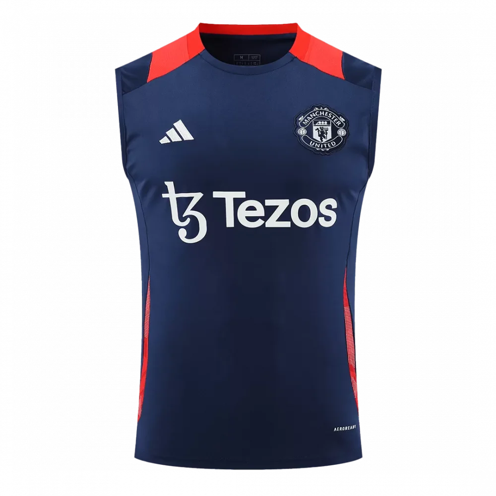 Step onto the pitch with confidence wearing the Manchester United Pre-Match Sleeveless Top in sleek navy. This design features bold red accents along the shoulders and sides, echoing the club’s historic passion and spirit. Lightweight and breathable, it’s crafted to keep you cool and comfortable as you channel the relentless energy that defines the Red Devils.