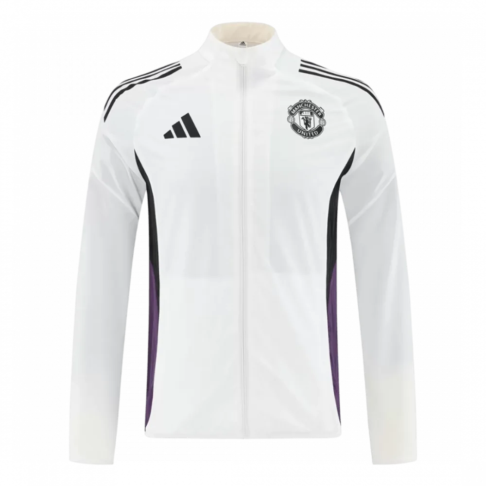 Step onto the pitch or the streets with the Manchester United Windbreaker Jacket 2025/26 in sleek white. This design features crisp black stripes along the shoulders and subtle purple panels on the sides, combining elegance with a bold flair. Honoring Manchester United’s legacy of resilience and style, the jacket embodies the club’s commitment to excellence both on and off the field.
