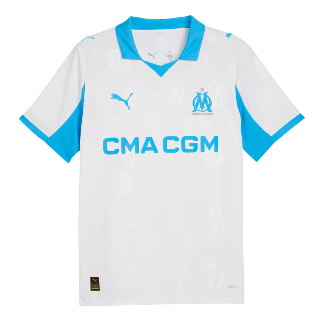 Step onto the pitch with the Marseille Home Soccer Jersey 2025/26, featuring the club’s iconic white base accented by bold sky blue details on the collar and sleeves—colors that proudly represent the pride and passion of this legendary team. Subtle tonal patterns woven into the fabric pay tribute to Olympique de Marseille’s rich history and motto, “Droit au But” (Straight to the Goal), inspiring every player to push forward with relentless determination.