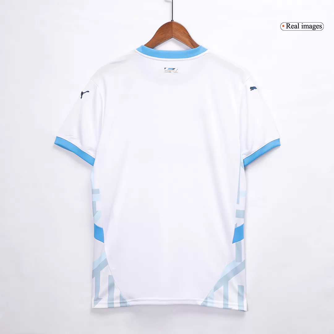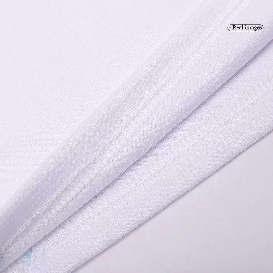 The new 2024-2025 football shirt blends OM’s traditional white and sky blue hues with navy accents, creating a classic yet modern look. What sets the 24-25 home Marseille jersey apart are the distinctive crest and panels that contribute to Marseille jersey’s uniqueness. Notably, the side and back panels of Marseille jersey showcase an abstract flag design, symbolizing the flags waving proudly in the stadium during each match. The motifs adorning the sides serve as a visual representation of the vibrant atmosphere created by the fans. A special touch is the “Portez” inscription on the collar, a heartfelt tribute to the supporters who are revered as the 12th player here at OM, embodying a spirit of unity and passion unlike any other.