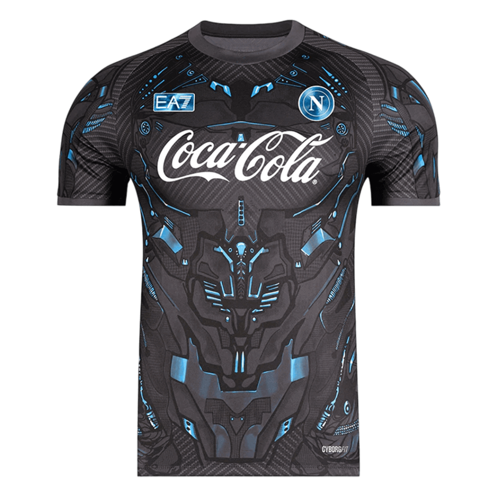 Step into the future of football with the Napoli Pre-Match Soccer Jersey 2025/26 in sleek black. This striking design features intricate, futuristic patterns in electric blue, inspired by the strength and resilience at the heart of Napoli’s fighting spirit. Paying homage to the club’s rich history while embracing innovation, the jersey embodies the relentless energy that powers every match.