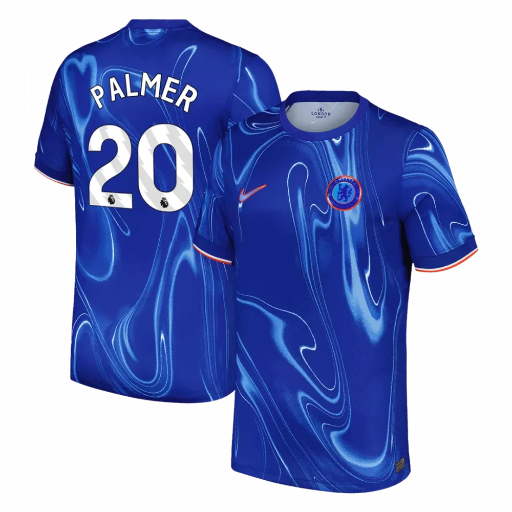 Embrace the bold spirit of Chelsea with the PALMER #20 Home Soccer Jersey, featuring a stunning electric blue base accented by swirling marble-like patterns that bring dynamic energy to the iconic design. Subtle touches of orange on the sleeve cuffs and crest nod to the club’s rich London heritage, blending tradition with modern flair. Crafted for peak performance, this jersey combines breathable, lightweight fabric with advanced moisture-wicking properties to keep you cool and comfortable through every match.