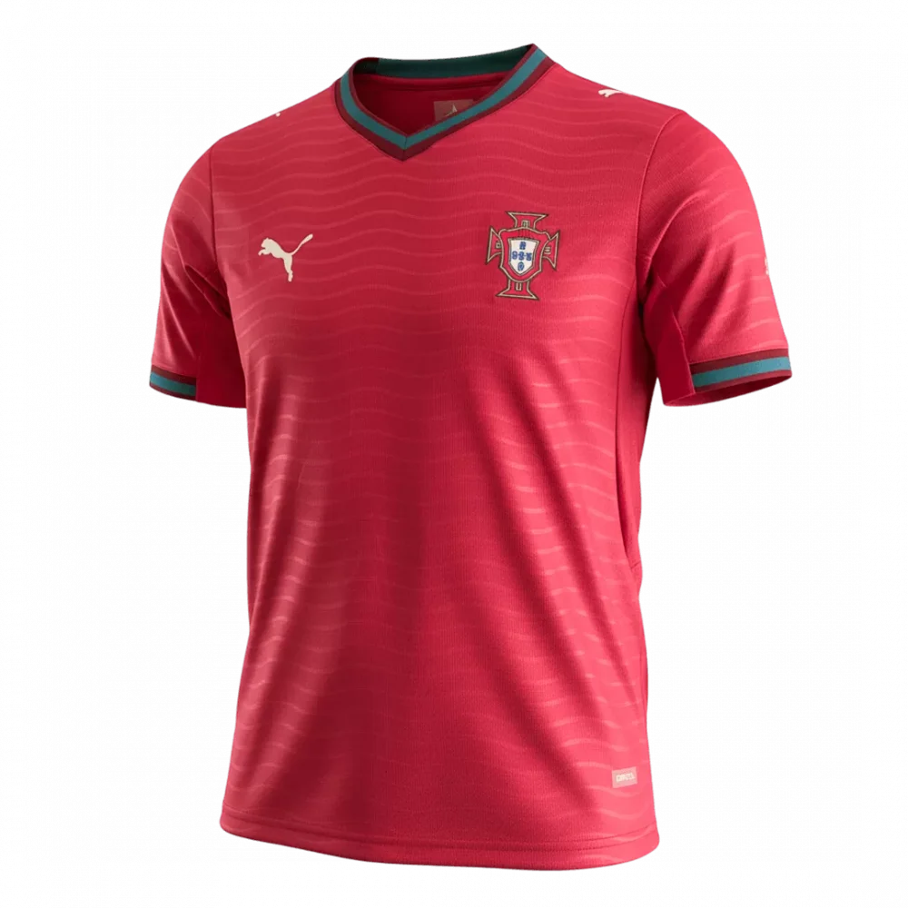 Step onto the pitch with the Portugal Home Soccer Jersey for World Cup 2026, where tradition meets modern design. Featuring a rich red base that honors the nation’s iconic colors, subtle wave patterns add depth and movement, while green and red trim on the collar and sleeves reflect Portugal’s proud heritage. The classic crest on the chest symbolizes decades of passion and success, inspiring every player and fan alike.
